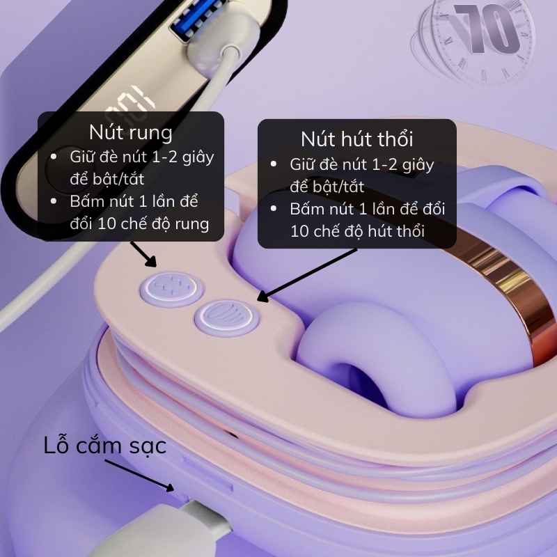 Người dùng có thể dễ dàng chuyển đổi giữa các chế độ bằng nút bấm trên thiết bị, từ đó tìm ra nhịp rung hoặc cường độ hút phù hợp nhất với cơ thể mình.